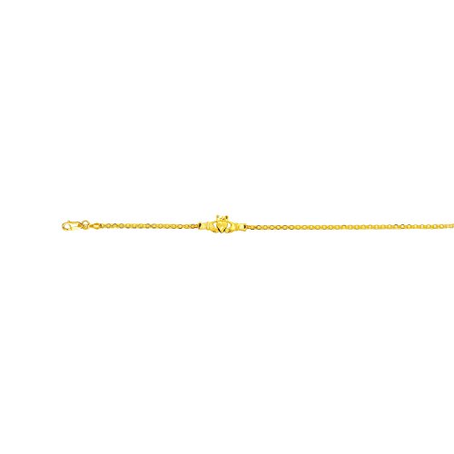 -. Binding : Jewelry -. Brand : JewelStop -. Department : womens -. Feature : Ravishing and stunning anklet brought to you by Jewelstop. / The anklet is crafted in 14k gold stamped and marked. / The Anklet is yellow gold in color. / The claddagh chain anklet has an unlimited 1 year warranty and 30 days money back guarantee. / The product dimensions are: 10" long and 9mm in width. -. Label : JewelStop -. Manufacturer : JewelStop -. PackageQuantity : 1 -. ProductGroup : Jewelry -. ProductTypeName : FINENECKLACEBRACELETANKLET -. Publisher : JewelStop -. Studio : JewelStop -. Title : JewelStop 14k Solid Yellow Gold Claddagh Anklet Bracelet, Lobster Claw - 10"