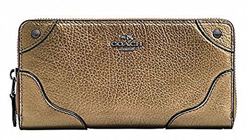 COACH MICKIE ACCORDION ZIP WALLET GRAIN LEATHER METALLIC BRASS