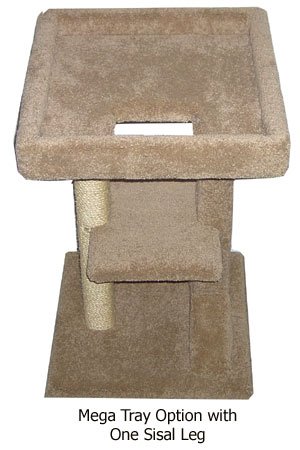 The 32" Sleeping Tray is the #1 cat tree in this category. This mid-sized sleeper can be customized with sisal on one or both legs. The large tray 20"x12"x3" will accommodate many friends and toys. We also offer a Mega-Tray for your top sleeping tray and it is 20"x20"x3"!!! This sturdy tree has been built for cats jumping on and launching off of. The large wobble- free base is 20"x20". The 0