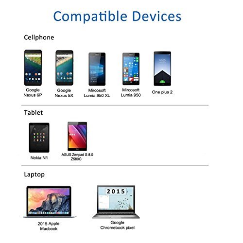 Compatible with the new MacBook 12-inch, Google Chromebook Pixel, Nexus 5X / 6P, Asus Zen AiO smartphones, Nokia N1 Tablet, and other devices with USB-C ports.