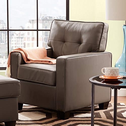 (Zipcode)/Kids' Furniture Room Decor/Chairs/DIRECT FROM USA/Tufted Arm Chair Faux Leather Upholstered Armchair Living Room Furniture Soft Seat (Grey)