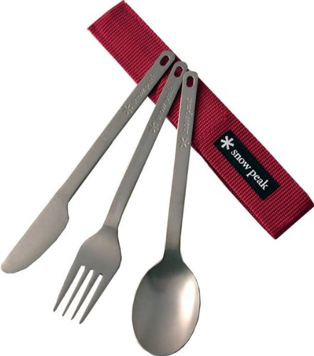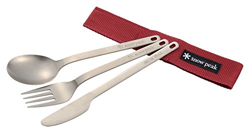 Product DescriptionSPECIFICATIONS of the Snow Peak Titanium Cutlery Set Weight: 1.8 oz Dimension: 8 1/2 x 1 5/8" Titanium0