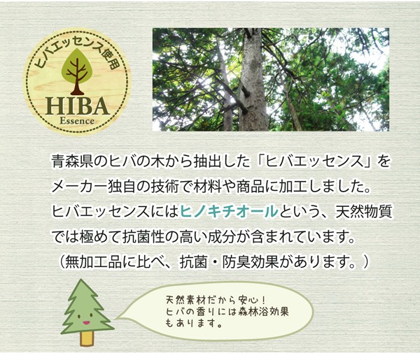 【素材】:生地=側)綿100% メッシュ部分)ポリエステル100% 中材=ヒバエッセンス練り込みポリエチレンパイプ、ポリエステルわた