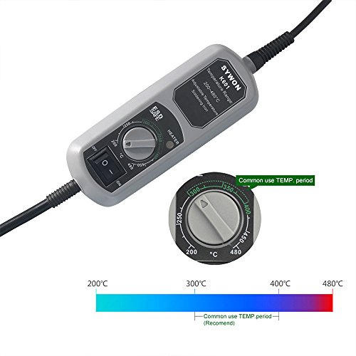 Hand-Held Temperature Adjustment Module and ON-OFF Switch, means you can start soldering anywhere at any time. The temperature range is 200°C ~ 480°C / 392°F ~ 896°F, normally used temp period is from 300°C~400°C