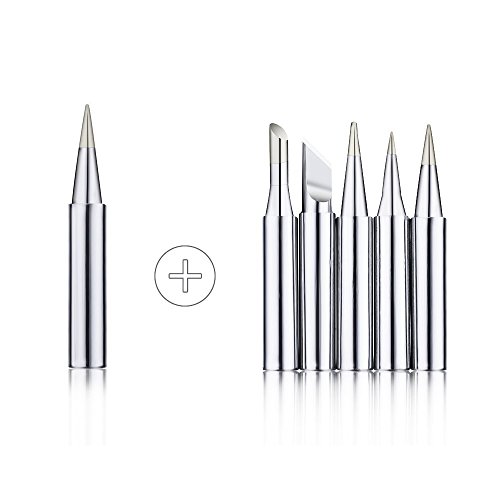 Total 6 high quality soldering iron tips heat up and cool down very quickly. Satisfy different soldering needs: 2 x 900M-T-B, 1 x 900M-T-I, 1 x 900M-T-K, 1 x 900M-T-4C and 1 x 900M-T-2.4D