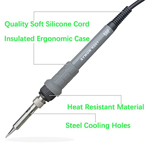 Sywon 60W ESD Soldering Iron Kit with ON-OFF Switch Temperature Adjustable, Large Soldering Stand Holder, 5 Extra Tips and 104 Inch Power Cord