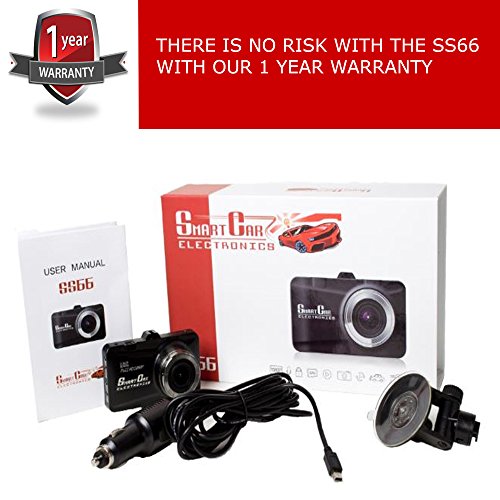 -. Binding : Electronics -. Brand : Smart Car Electronics -. EAN : 0646437959926 -. Feature : G-SENSOR AND MOTION DETECTION: The Smart Car Electronics SS66 has a built in G-sensor which automatically locks recorded footage in the case of an accident. And with built in motion detection sensors, the SS66 never misses a second as it automatically starts recording as soon as the car turns on. / FULL HD1080 : registration plates and traffic lights are easily visible with a 140° wide angle range of vision. / ZINC METAL CASING: designed to provide full protection of visual and audio recording in the case of an accident / CONTINUOUS LOOP RECORDING : Never run out of memory on you're SD card as the SS66 automatically deletes the oldest footage in order to make space for the newest footage. This can be set to record in 3, 5 or 10 minute loops. This is easy to set in the user friendly settings menu. / ONE YEAR MONEY BACK GUARANTEE. IF YOU DON'T LIKE THE PRODUCT WELL GIVE YOU A FULL REFUND WITHIN A YEAR OF PURCHASE -. Label : Smart Car Electronics -. Manufacturer : Smart Car Electronics -. Model : LYSB018SS5WPS-ELECTRNCS -. MPN : LYSB018SS5WPS-ELECTRNCS -. PackageQuantity : 1 -. PartNumber : LYSB018SS5WPS-ELECTRNCS -. ProductGroup : Car Audio or Theater -. ProductTypeName : CAR_ELECTRONICS -. Publisher : Smart Car Electronics -. Studio : Smart Car Electronics -. Title : Smart Car Electronics SS66 - Full HD 1080P Car DVR - Dashcam has 140 degree Ultra Wide Visual Angle - Built in G sensor - Motion detection - Loop recording - Night vision - Zinc metal casing -. UPC : 646437959926