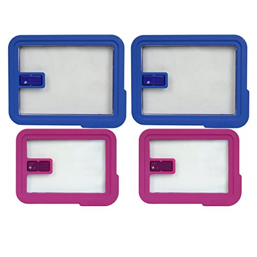Two Pyrex 7211-NLC 6 Cup Blue Rectangle No Leak Lids and Two Pyrex 7210-NLC 3 Cup Pink Rectangle No Leak Lids