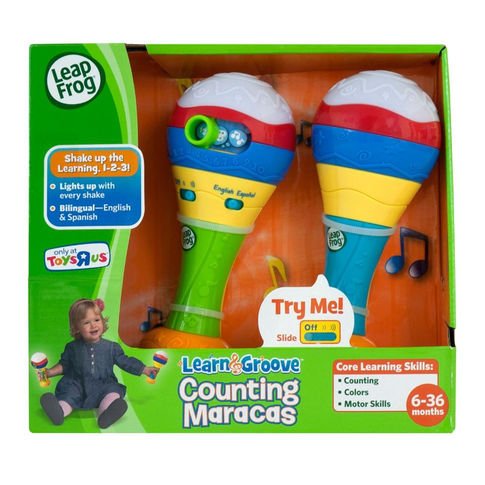 -. Feature : Recommended for babies age 6 months and older. / LeapFrog Learn & Groove Counting Maracas features three ways to play: Counting, Colors and Music Play learning modes. Introduces colors, vocabulary and counting 1-10 in English and Spanish. Shake and move to a learning groove! / LeapFrog Learn & Groove Counting Maracas allows baby to explore creativity and open-ended play. Maracas provide lights, sounds and learning activities. / LeapFrog Fridge Phonics Magnetic Letter Set includes Magnetic Tile Reader, and 26 Interactive Magnetic Tiles. Skills learned include phonics, the alphabet, fine motor skills, and vocabulary. Play with 26 interactive alphabet tiles! Sing along to fun learning songs and explore the world of A to Z with colorful letter tiles that talk, sing and teach about the alphabet. / LeapFrog Fridge Phonics Magnetic Letter Set reinforces alphabet knowledge, including letter names and sounds. Playing with the letter tiles, which are designed for easy manipulation by little hands, also helps strengthen fine motor and coordination skills. Celebrate A to Z with fun learning songs, including the "Alphabet Song" and "Wheels on the Bus."