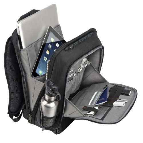 -. Feature : Padded compartments for high-tech gadgets like smartphones, power adapters, mp3 players, and hard drives, plus slip business card pockets, versatile Velcro key keeper, and deep zippered compartment / RFID blocking pocket for credit cards and passports hinders unauthorized access to personal data / CordControl elastic loops hold a range of small items such as pens, earphone cords and memory cards / CordPass feature protects and organizes power brick and connects power cord to laptop compartment, allowing laptop to remain secure while charging / Padded fleece-lined slip pocket for iPad or tablet