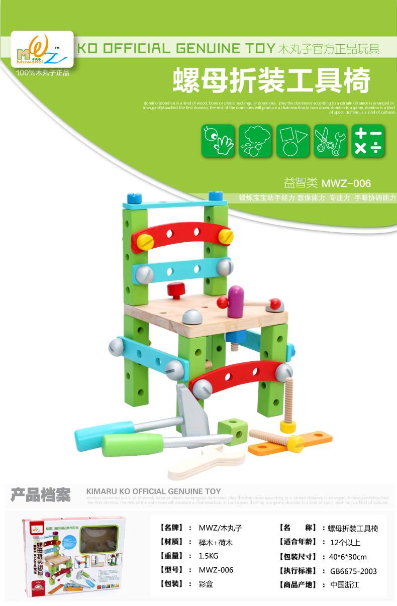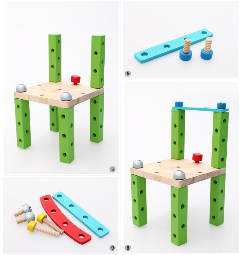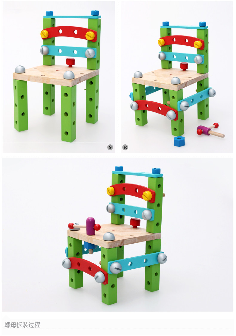 拆装拼装螺母组合积木 鲁班椅工作椅 儿童早教益智动手玩具