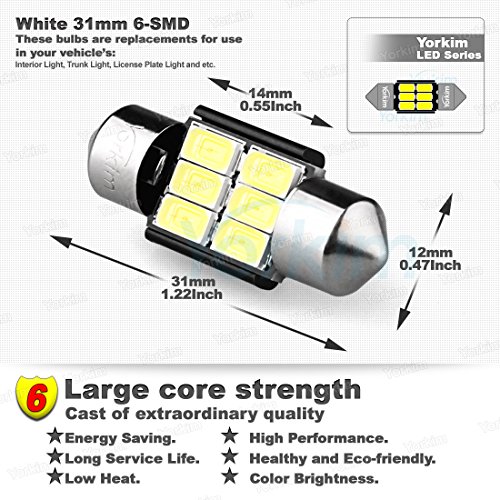 Yorkim 4x 31mm (1.25") 6-smd 5730 Dc 12v Super Bright Festoon White LED Bulbs, Fit for 3157 LED, De3157 Bulb, De3175 Super White Bulb (Pack of 4)