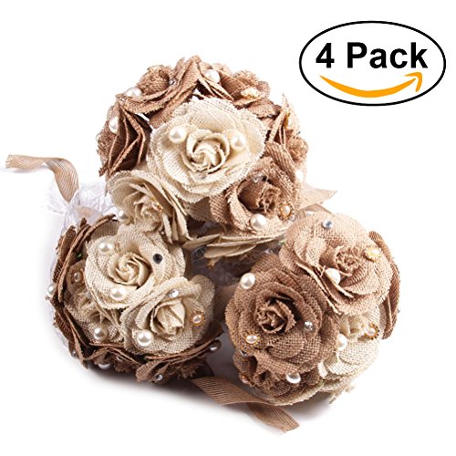 Tinksky Rustic Wedding Bouquet Burlap Flower Bouquet Lace and Pearls Wedding Anniversary Engagement Decoration, Christmas Gift, Pack of 4