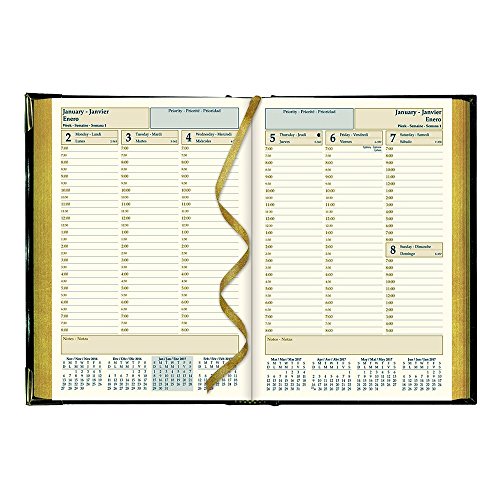 -. Feature : Appointment schedule from 7:00 a.M. To 8:00 p.M. In 1/2 hour intervals / Calendars for 8 months on each spread / Shaded P.R.Iority and note boxes on each spread / Gilded page edges, gold corners and ribbon bookmark / Colored world maps