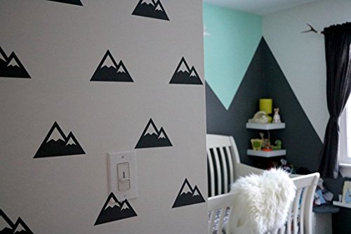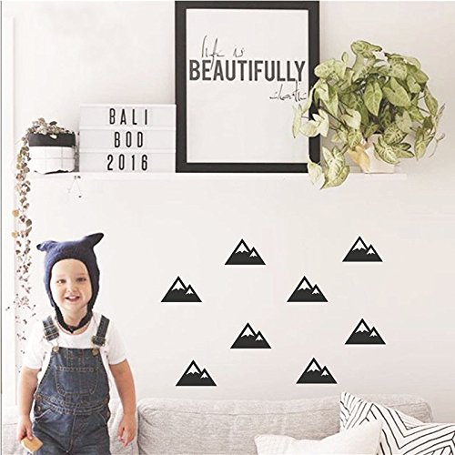 Mountain Patterned Triangles Wall Sticker Nursery Decal for Bedroom Kids Room Wall Decal Vinyl Triangles Mountain Mural YYU-30 (BLACK)