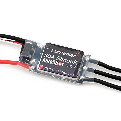 -. Binding : Electronics -. Brand : Lumenier -. Feature : The Lumenier 30 amp Auto Shot ESCs have been tested and are compatible with all Lumenier motors (FX1806, FX2206, FXC2206, RX2204, RX2206, FX2208), 2S-4S, both 5" and 6" props without sync loss issues or cogging. / The Simonk Auto Shot firmware is pre-calibrated with endpoints 1060us - 1860us. This corresponds to the default endpoints in both Base flight and Clean flight (default configuration). Therefore, "Calibration" procedure is not necessary or recommended. / Active Braking/Damped Light/Comp_PWM. Auto Shot (OneShot125/ FastPWM Auto Detect).Customized to drive all motors without sync issues or cogging. / To enable new features on Base flight: On configuration tab, check "Enable One Shot" and "Enable FastPWM".Scroll down and click "Save". / To enable new features on Clean flight:On Configuration tab, check the "Enabled" box next to "ONESHOT125" Feature.Scroll down and click "Save". -. IsEligibleForTradeIn : 1 -. Label : Lumenier -. Manufacturer : Lumenier -. Model : 30 amp ESC -. MPN : 30 amp ESC -. PackageQuantity : 1 -. PartNumber : 30 amp ESC -. ProductGroup : Car Audio or Theater -. ProductTypeName : TWO_WAY_RADIO -. Publisher : Lumenier -. Studio : Lumenier -. Title : Lumenier 30 amp ESC with SimonK AutoShot Firmware