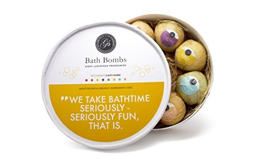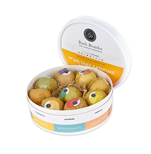 AVAILABLE IN A PACK OF 8 ASSORTED SCENTS: Grapefruit, Lemon, Lavender, Red Rose, Peppermint, Chamomile, Jasmine, and Vanilla. Whatever your relaxation mood is, there's a relaxing aroma just for you. Packaging made with recycled materials where available. Each bath bomb is individually wrapped.