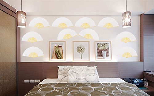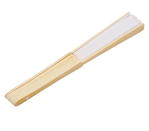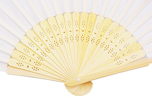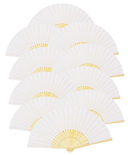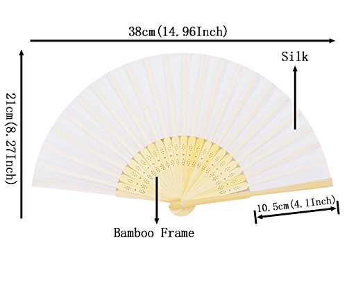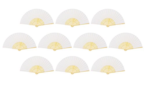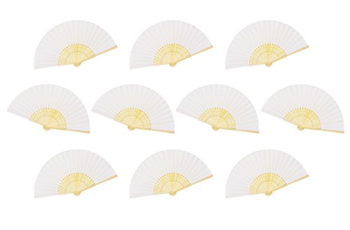 Amajiji Hand Fan, 10pcs Folding Fan White Silk Bamboo Handheld Folded Fan Bridal Dancing Props Church Wedding Gift Party Favors Home Office DIY Decor (10PCS)