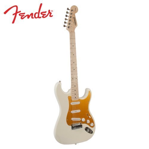 - Feature : Squier by Fender Arctic White Electric Guitar with Basswood body / Maple c-shape neck with Maple fingerboard, 21 medium jumbo frets, and Dot position inlays / 25.5" scale length, 42 mm nut width, / 5-way selector switch, Synchronous tremolo bridge, 3 single-coil pickups: 1 master volume, 2 tone controls / Includes: Stand, Strap, Strings, Tuner, Pick Sampler, Hard Case & Online Lesson