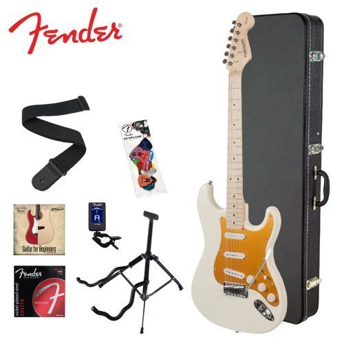 - Title : Squier by Fender Arctic White Electric Guitar w/ Stand, Strap, Strings, Tuner, Pick Sampler, Hard Case & Online Lesson
