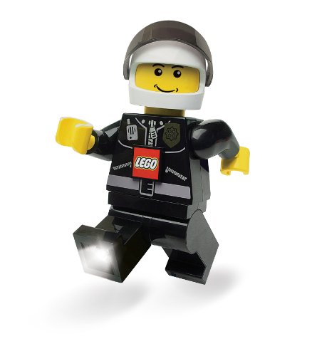 For fun and safety - for tent or trail! This Lego light has a rugged design and is 7.5" in height. Includes two white LEDs -one in each rotatable leg, and 3 replaceable AA batteries. Push chest switch for ON, then again for OFF. Legs, arm, and head are posable.