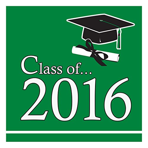 Creative Converting 36 Count Class of 2016 Paper Beverage Napkins, Emerald Green
