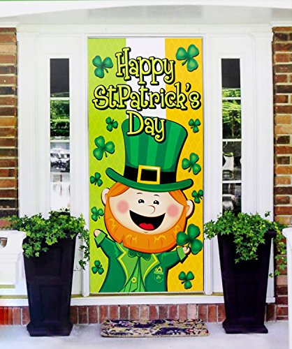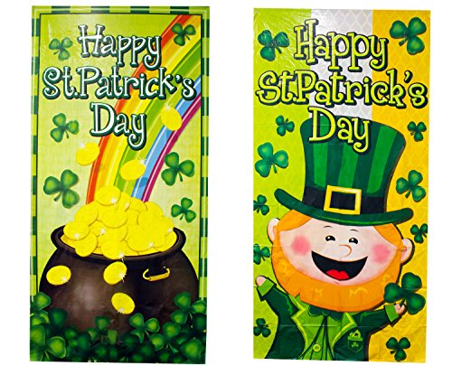 St Patrick's Day Front Door Decoration - Assorted Designs Irish Leprechaun and Shamrock Bucket - 2 Pack