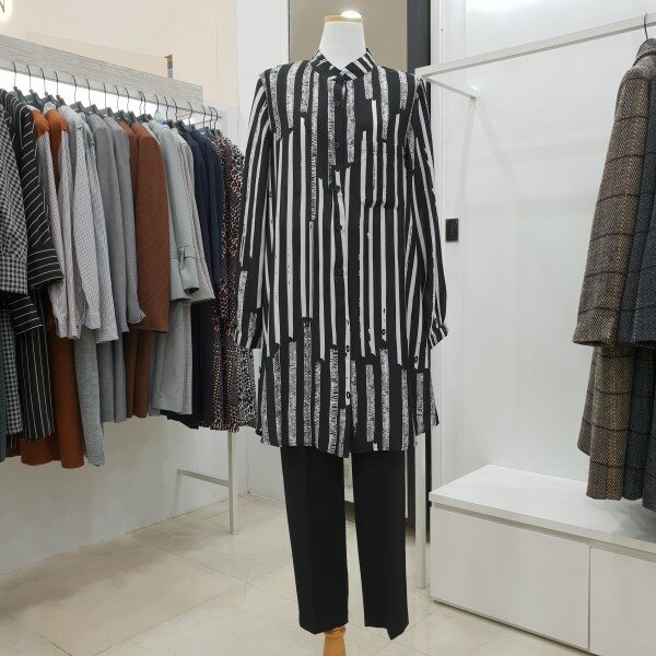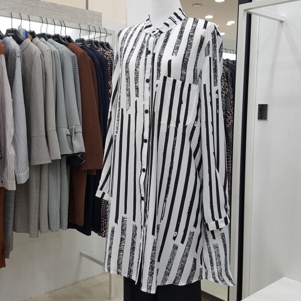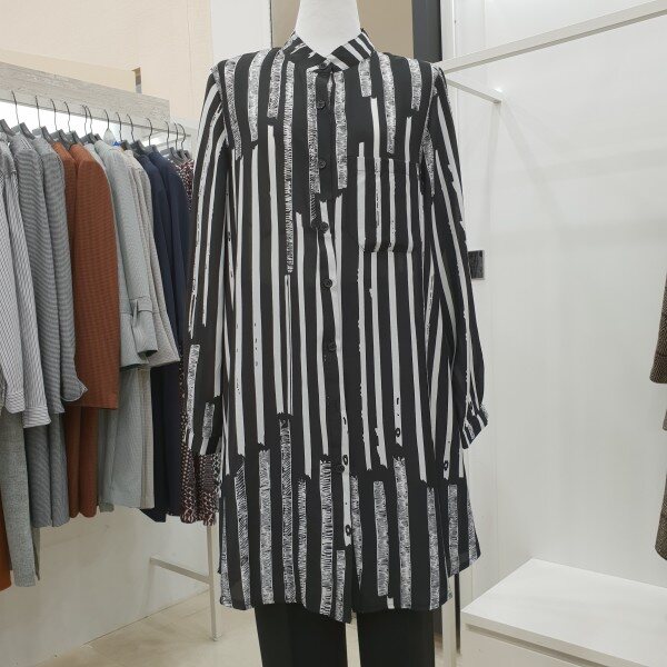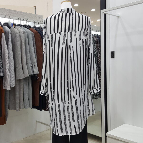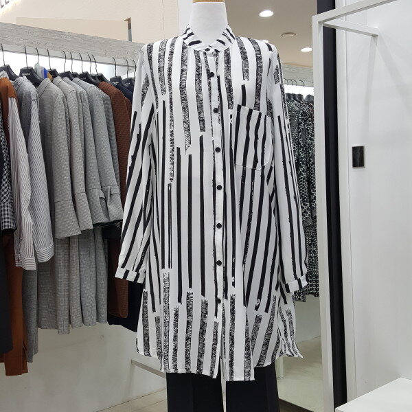 하늘하늘한 소재감으로 가벼워 간절기에 입기 좋은 롱 블라우스입니다. 스트라이프 패턴으로 체형 커버에 좋으며 유니크한 스타일로 다양한 아우터와 잘 어우립니다.