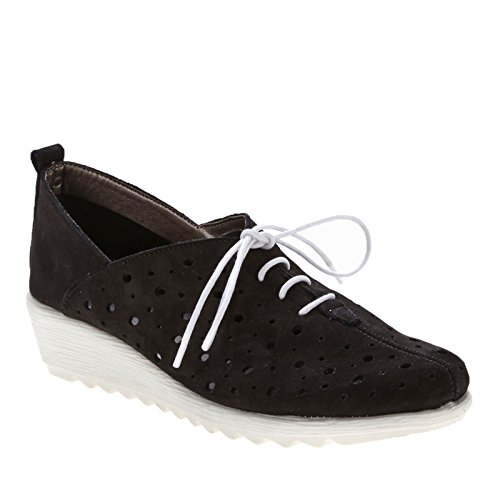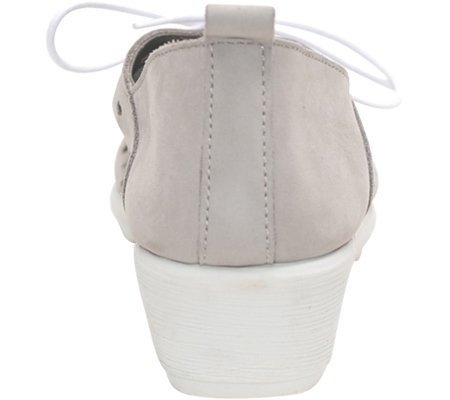 Product DescriptionThis fun, perfed sneaker is fresh and light. A stylishly angled topline adds flattering appeal. Offered in buttery soft nubuck on a contrast off-white wedge0