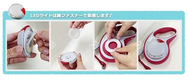 | 暗い中のお散歩がしやすいLEDライト。フロントライトとバックライトを別々に使うことができ、それぞれにON・OFFスイッチがついています。綿ファスナーで着脱簡単!VARIOシリーズSサイズ、Mサイズへ取り付け可能。 |