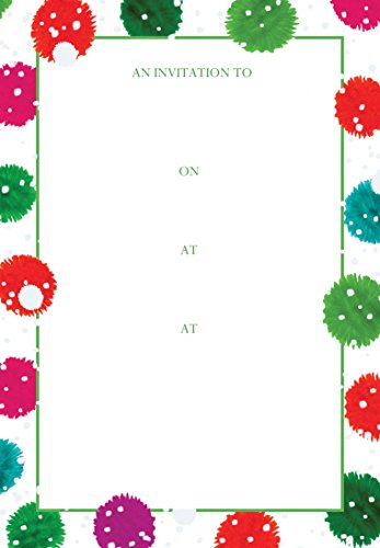 Entertaining with Caspari Snowy Pom Poms Fill In Invitations With Envelopes (8 Pack), Multicolored