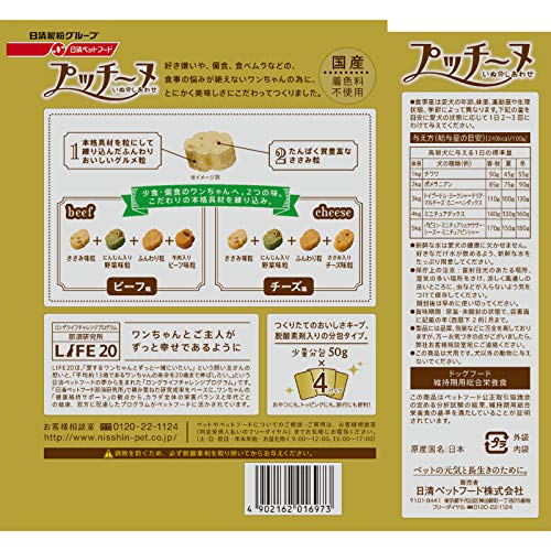 素材構成:水分(40.0%以下)/粗タンパク質(15.0%以上)/粗脂肪(4.5%以上)/粗繊維(3.0%以下)/粗灰分(6.0%以下)/カルシウム(0.8%以上)/リン(0.7%以上)/リノール酸(0.7%以上)