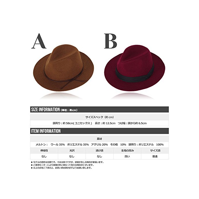 머리 주위:약58cm(유니섹스) 높이:약12.5cm 날밑폭:처음부터 약6.5cm