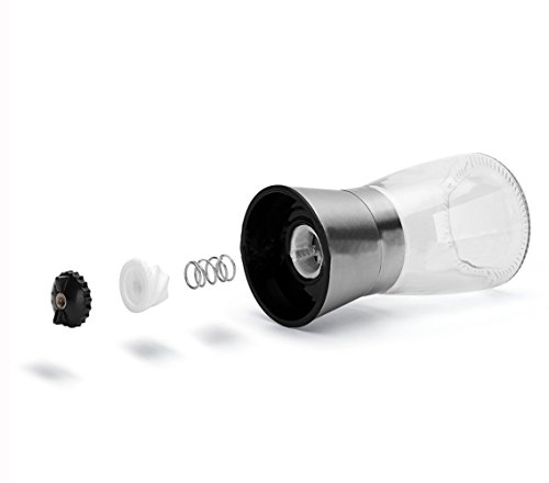 - BRUSHED STAINLESS COVER & GLASS BODY DESIGN - Brushed stainless steel cover keeps the table clean and prevent salt or pepper from dust. Non-corrosive glass body makes you clearly to see what is inside and how much you have left