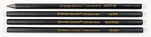 - The all-in-one Studio Series Drawing Set contains 12 graphite pencils (5H-8B); 3 charcoal pencils (soft, medium, hard); a soft charcoal sketching pencil; 3 charcoal sticks (soft, medium, hard); and 3 graphite sticks (soft, medium, hard). It also includes a sharpener for graphite pencils, a sharpener for charcoal pencils, a kneaded eraser, and a plastic eraser.