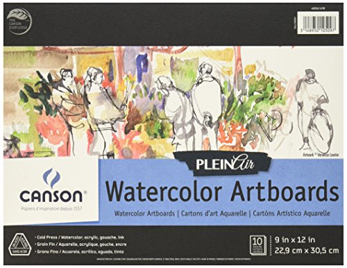 Canson Plein Air Watercolor Art Board Pad for Watercolor, Ink, Gouache and Acrylic, 9 x 12 Inch, Set of 10 Boards