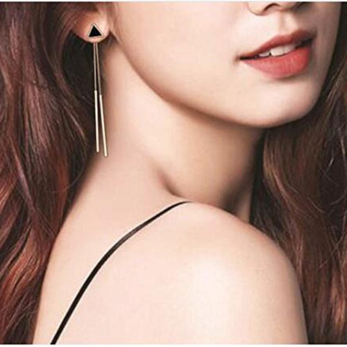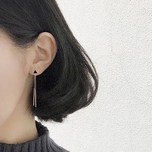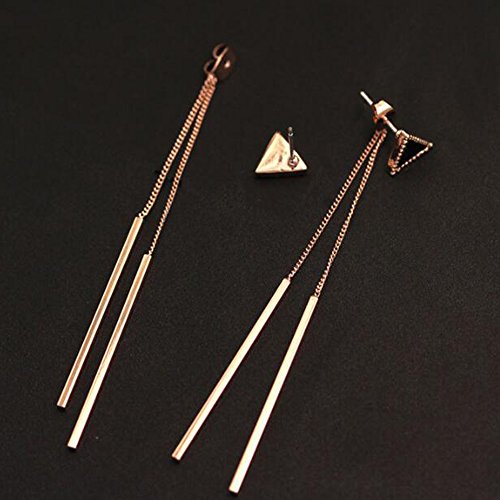 LuckySHD Rose Gold Triangle Drop Long Dangle Earrings Chain Tassels Stud Earrings