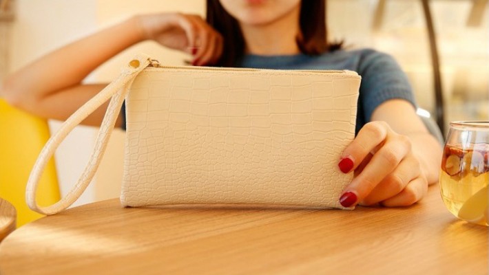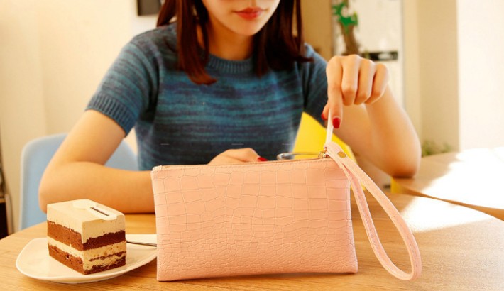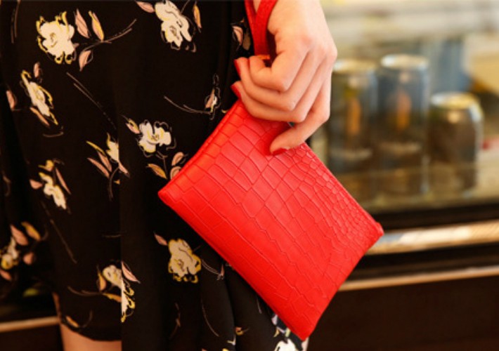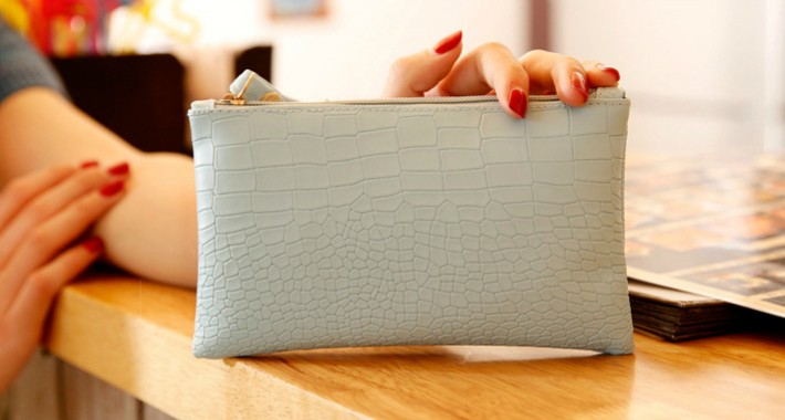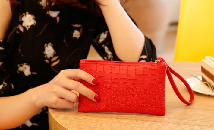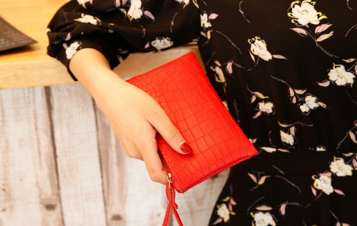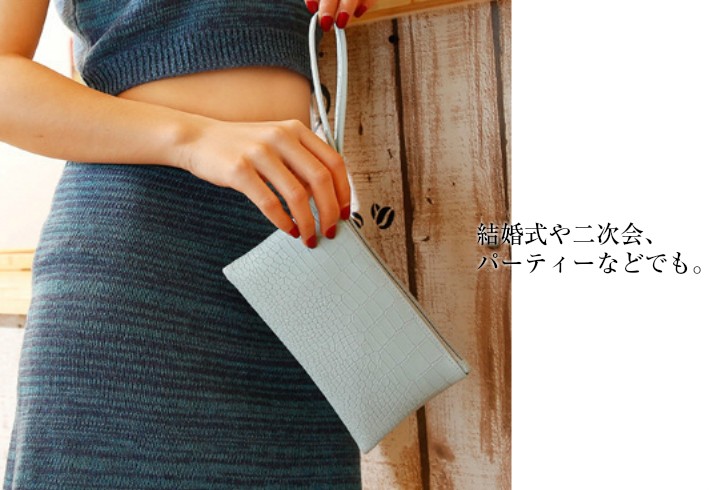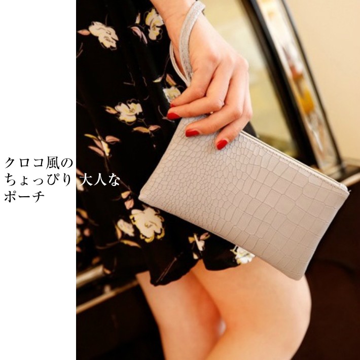 かわいいクロコ風のポーチです。