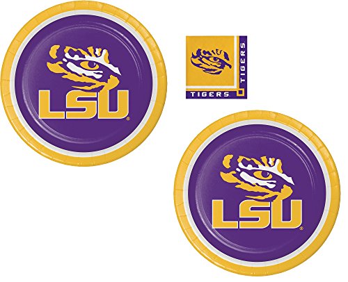 Louisiana State University LSU Plate and Napkin Bundle: 16 Dinner Plates and 20 Beverage Napkins