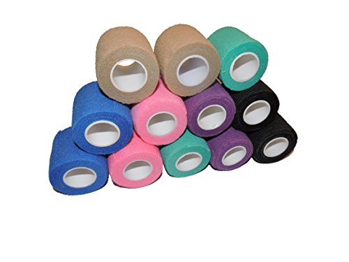 - NO CLIPS or pins needed and will not stick to hair or skin. These self adherent wrap sticks to itself. 12 assorted color Rolls of Self-adherent bandaging tape