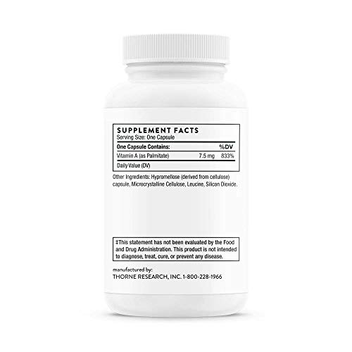 Pure vitamin A for healthy vision, cellular development, and to support immune function.Since 1984, Thorne has set the standard for the exceptional formulation and quality manufacturing of nutritional supplements. Thorne delivers premium, science-based products, a health diagnostics technology platform, and the latest in medical education. With more than 350 products, Thorne is the most dispensed brand by 30-40 year old health-care practitioners. Thorne is dedicated to improving the health of our community as well as increasing the knowledge of nutritional health and wellness. Since 2012, Thorne has partnered with educational institutes and local charities to donate more than $1M in products and profits.