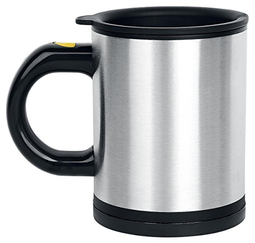 The stainless steel exterior, plastic interior, handle and lid keep your drink warm while on the go.