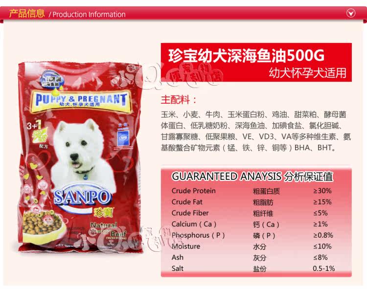 Treasure contains vitamin A and a variety of special factors rich (fish extract), can make the dog eyes bright eyes of God; and the special ingredients to enhance the dog generation night vision capability.