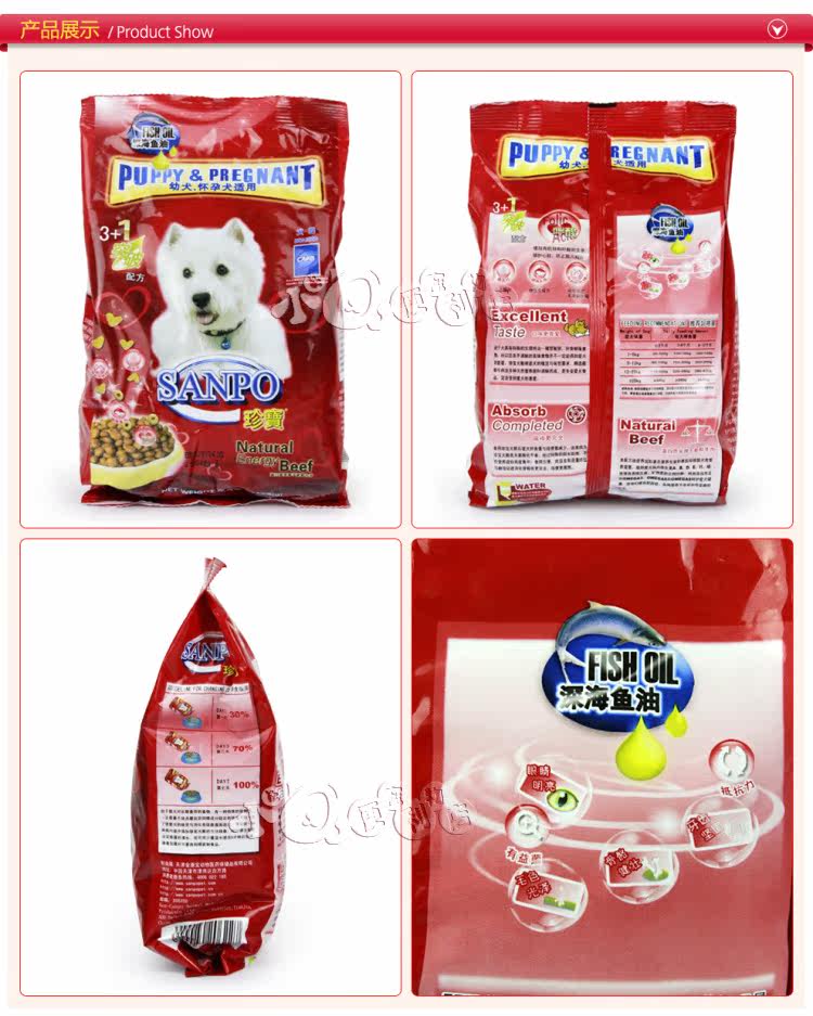 3+ breakthrough formula by the world renowned international nutrition experts and veterinarians according to the dog dog nutritional needs,maintain the vitamin A, B, D, E proportion, calcium, phosphorus, iron and various vitamins, minerals, especially add plenty of OMEGA6, OMEGA3 and OMEGA9 take care of the pet health, so they avoid obesity, malnutritiondisease and infectious disease problems.