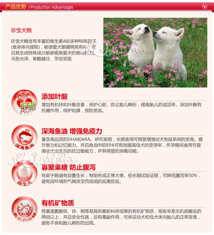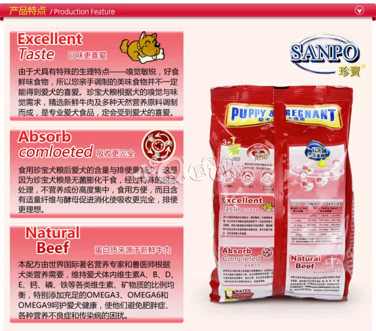 Appetite and defecation dog eating less precious baby dog food. This is because Jane Bo dog food is sterile puffed dry food, after dehydrationprocessing special, not only nutrition is highly concentrated, easy to use,and with the appropriate fiber and yeast promoting digestion and theabsorption is more complete, defecation more ideal