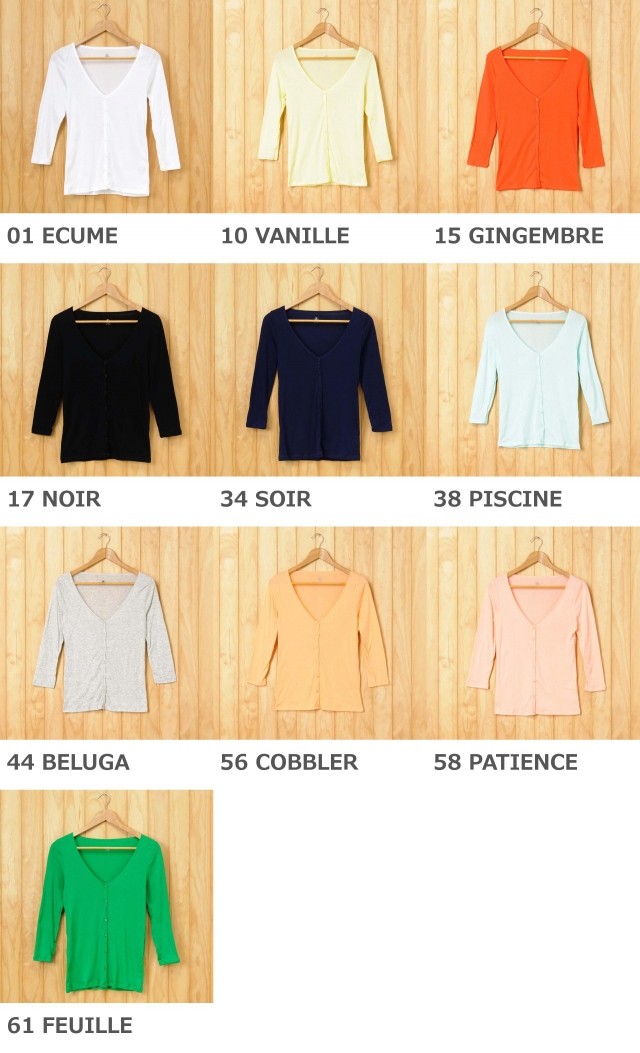 | カラー | 01 ECUME 17 NOIR 34 SOIR 61 FEUILLE 15 GINGEMBRE 38 PISCINE 44 BELUGA 10 VANILLE 56 COBBLER 58 PATIENCE | ||