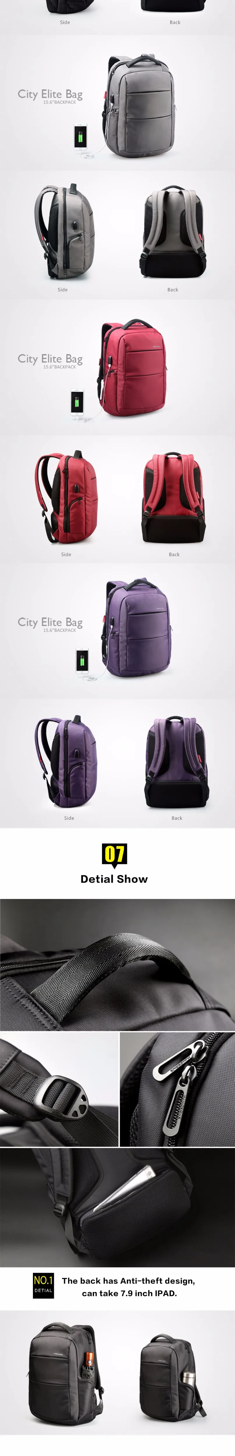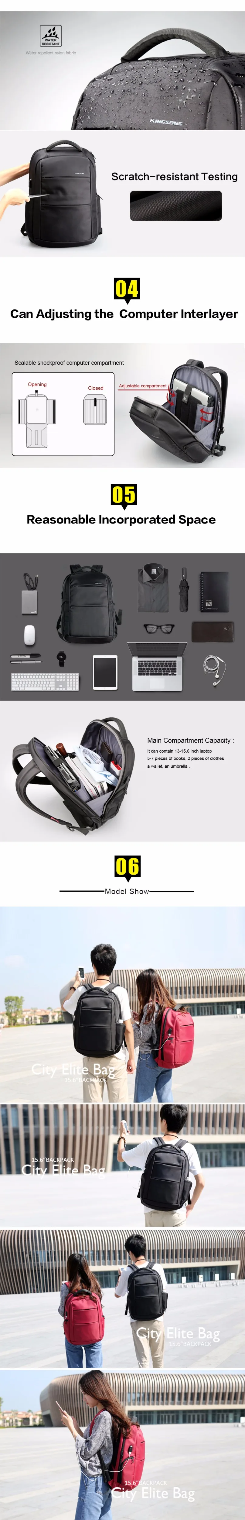 Kingsons KS3142W 15.6 inch Function Laptop Backpack External Charging USB Anti-theft Man Business Dayback Women Travel Bag