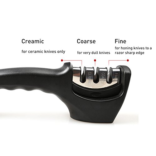 MAVIE 부엌칼 칼갈이 세라믹 롤 샤프너 칼갈이 스테인레스강 칼날 수동 칼갈이 3단계 연마 방법 간단 안전 키친 홈용