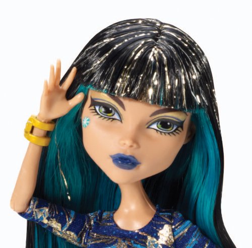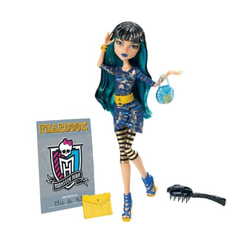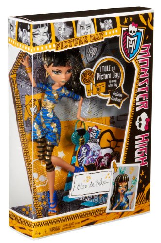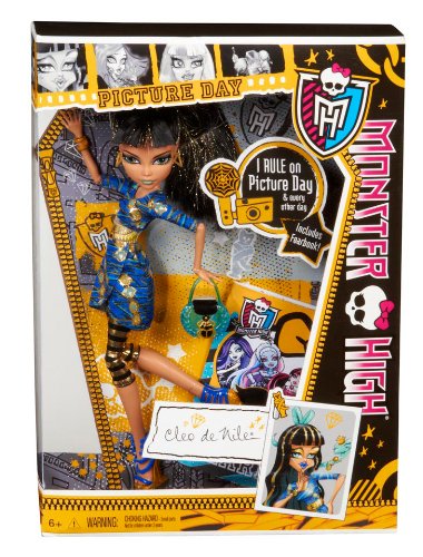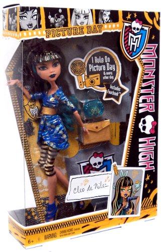 Studio : Mattel ReleaseDate : 2012-11-01 Publisher : Mattel Binding : Toy Product Description Monster High Picture Day Cleo De Nile Doll: The ghouls of Monster High are glamming it up for picture day with freaky fabulous looks! Armed with their Fearbook journals and picture day stickers, they can swap, trade and store the photographic memories. Each doll sports a fiercely fashionable new outfit incorporating details that celebrate her unique personality and style. Cleo de Nile doll is wrapped in an Egyptian-inspired outfit with plenty of sparkles for a photo finish. She carries a purse and comes with a notebook, hairbrush, doll stand and Fearbook journal with picture day stickers. Doll cannot stand alone. Each sold separately. 0