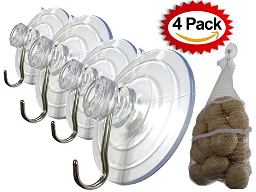 Super Strong Reliable Suction Hook Large Cups 3" (4 Pack) Heavy Duty Hangers Bathroom Shower Rack